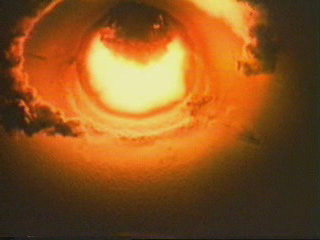 Нам же на ум приходит ещё один феномен – одно из первых испытаний американской термоядерной бомбы в водах Тихого океана, атолл Бикини (1950-е гг.) Факты совпадают. Огромная вспышка ядерного взрыва на фоне выстроенной эскадры испытательных кораблей (в основном эсминцев – ветеранов 2-ой мировой войны, без членов экипажей на борту). Испытателям был интересен масштаб поражения. То, что они получили, превысило все их ожидания. В момент взрыва стояла солнечная, тёплая и безветренная погода. Выделенная энергия цепной реакции со сверхвысокой температурой (более 100000 градусов) в прямом смысле зажгла море и атмосферу. Началось необратимое. Глобальной катастрофе хватило бы нескольких минут, что бы уничтожить всю планету… «Вдруг», неожиданно набежал мощный тайфун, который предотвратил необратимую реакцию аннигиляции. В связи с этим случаем дальнейшие наводные и воздушные испытания «термояда» проводились в более холодных широтах северного и южного полюсов.