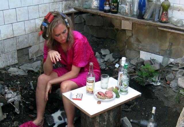 женщину по долгу она не работала, зато регулярно пила и делала детей с разными мужланами.
